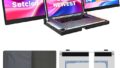 The 14-inch dual IPS FHD extender delivers a crisp 1080p display in a travel-friendly form. It connects via USB-C or HDMI (with power from USB-A) and packs into a slim carrying case. The foldable kickstand and spring-loaded clamp aim to fit most laptops up to 15.74″.