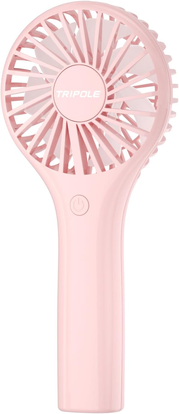 TriPole Portable Handheld Fan Mini Personal Fan 3 Speeds, Powerful Little Battery Hand Held Fans for Travel Trip Outdoor Concerts, Cute Small Rechargeable Lash Fans for Makeup Skincare Drying, Pink